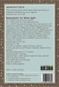 Anderson’s Farm combines appliqué, embroidery and simple piecing....there is a little wool appliqué. Painted wood buttons created from Lynette’s original drawings add dimension to the design. Buttons are included with each pattern.