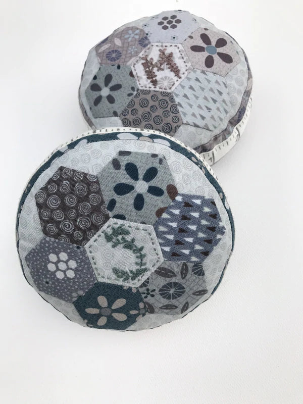 This kit includes pattern, fabrics and tape measure braid for you to make one pincushion. *Note: fabrics may vary slightly to the fabrics used in the samples shown in the photo.