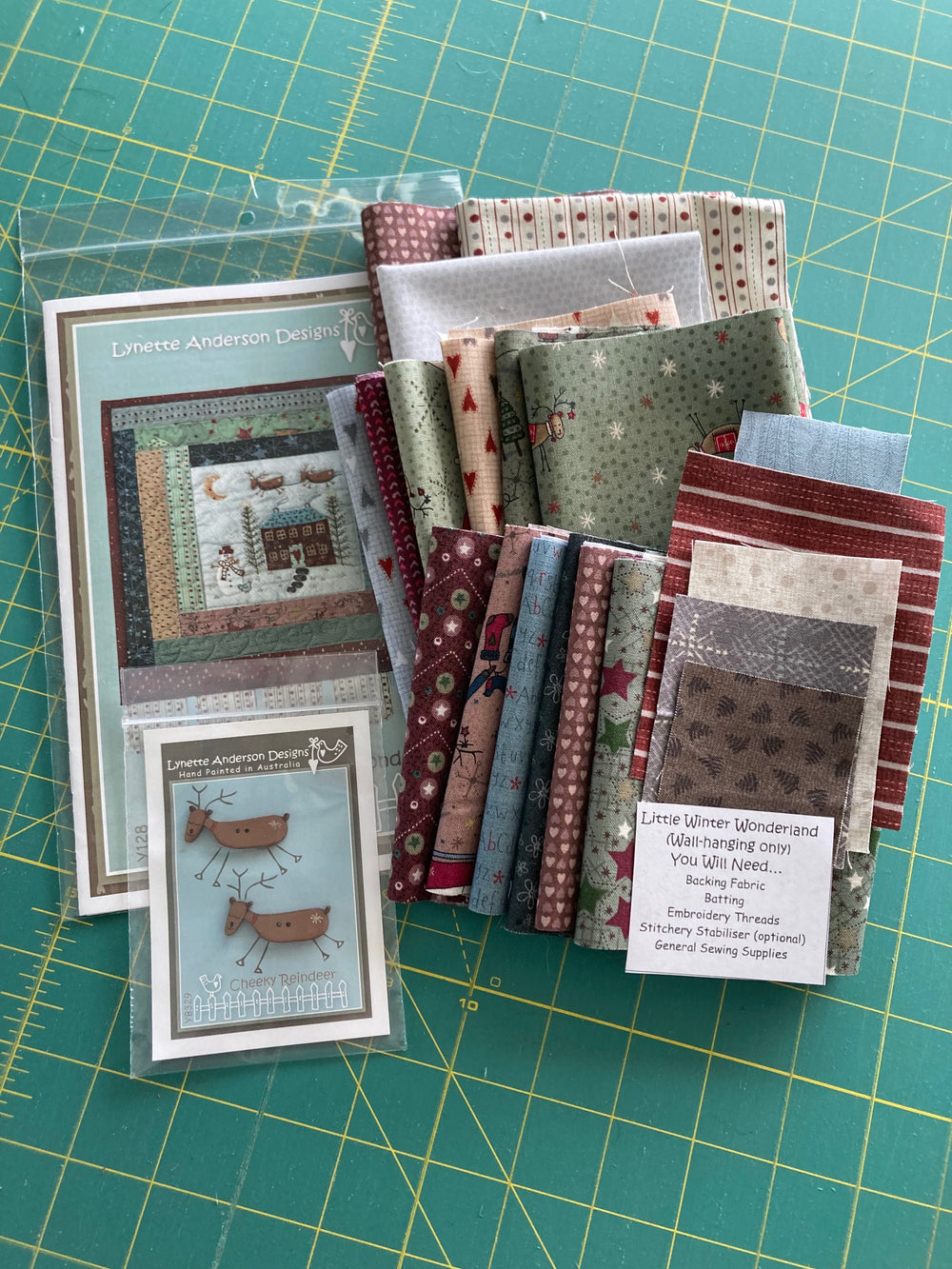 Excitement is in the air on this frosty magical night. Mr. Snowman is on the look out for someone special who could by flying in at any time. Lynette has combined simple stitchery with applique and added her favorite log cabin borders.