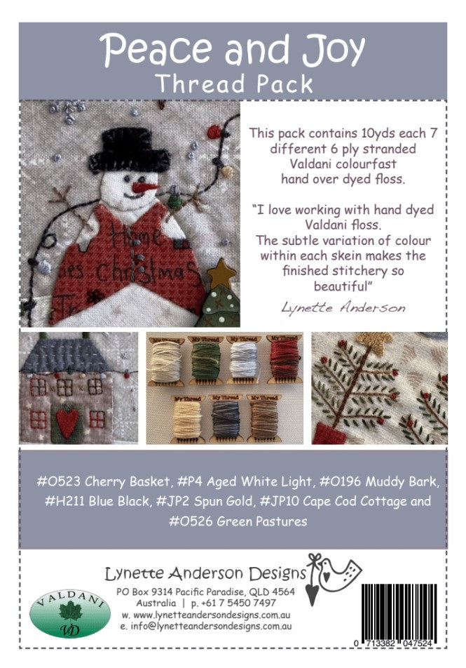 This pack contains 7 x Valdani hand dyed 6 strand embroidery threads for Lynette's Peace and Joy pattern.
