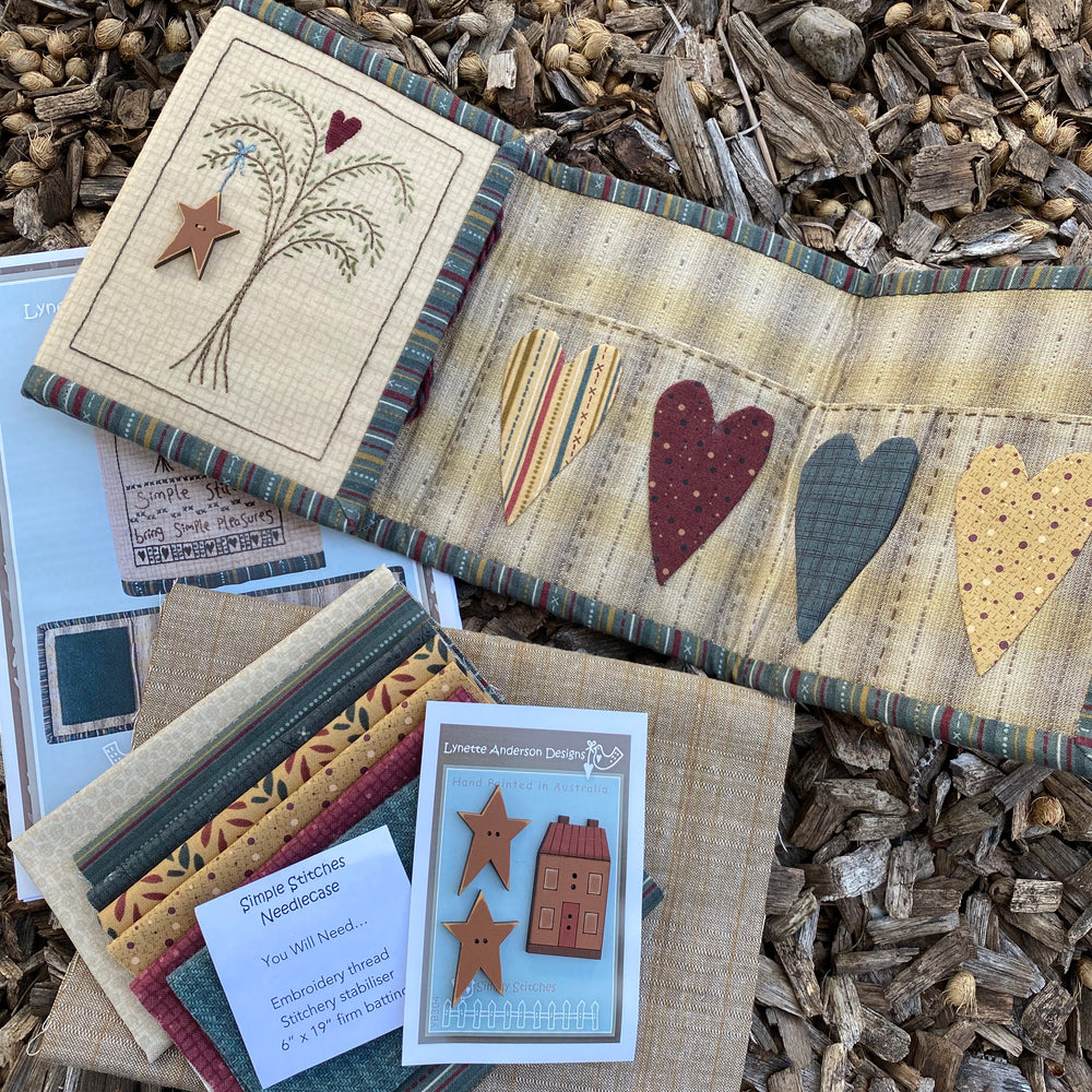 Lynette writes 'I just love the old samplers that children stitched to teach them the 'simple stitches' that would need for everyday use. This needlcase with its sampler style front, useful internal pockets and gorgeous buttons will be your tribute to those early samplers. Don't forget to put your name and the year somewhere on your needlecase...who knows where it will be in 100 years time.'