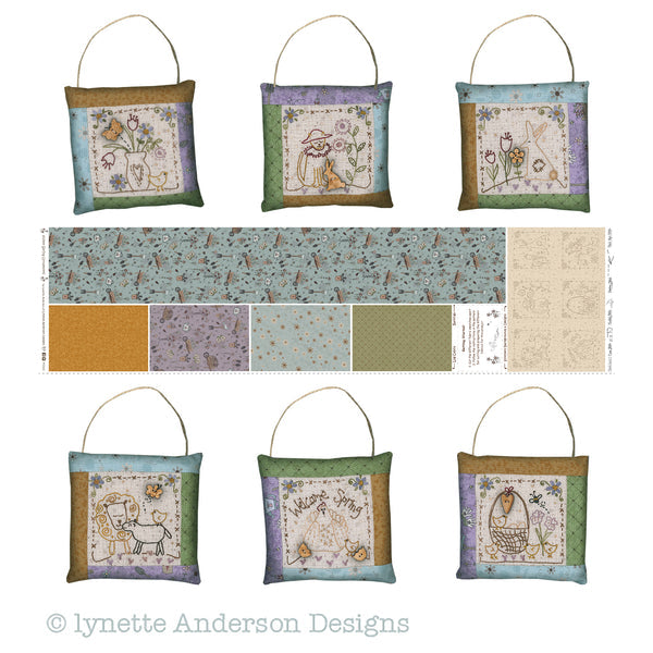 This kit includes the pattern, all the fabrics to make the 6 Spring Ornaments, raw wood buttons & the pre-printed stitchery background.